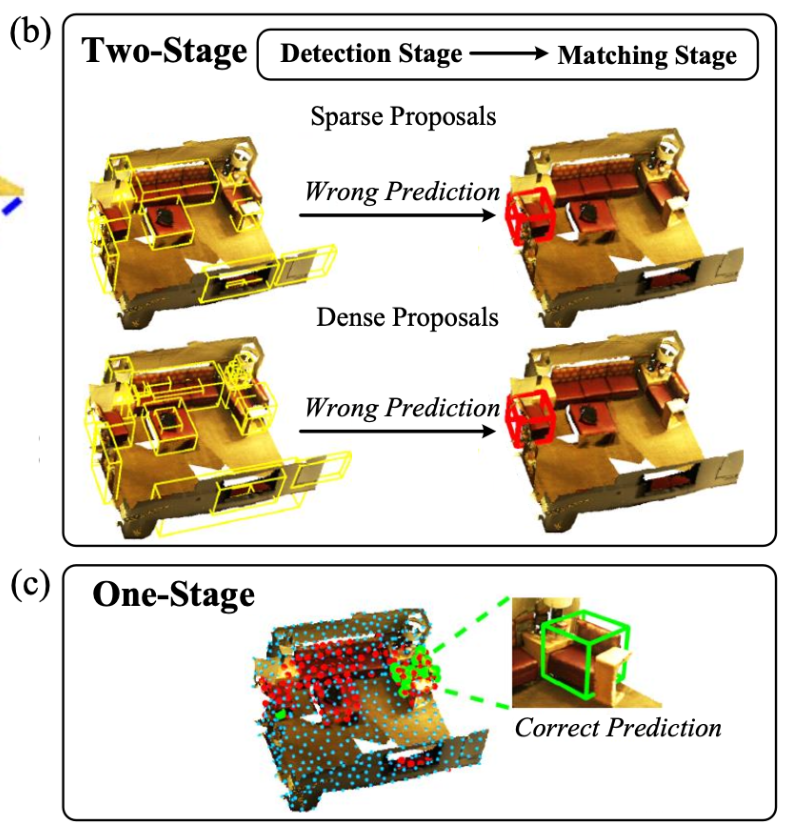 3D Visual Grounding은 자연어 설명을 사용해서, 오브젝트의 위치를 특정하는 작업입니다. 보통은 one-stage, two-stage 방법으로 분류할 수 있는데, 초기에는 two-stage 방법을 많이 사용했습니다. two-stage detect-then-match pipeline으로도 불렸는데, 말 그대로 오브젝트를 detector를 사용해서 찾은 다음에 자연어 쿼리와 매칭하는 형식의 파이프라인입니다.