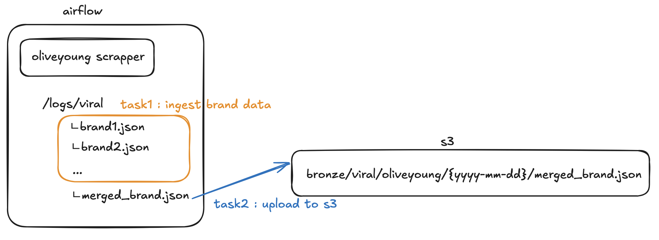 또 decoupling이 안될 뿐만 아니라 그럴거면 차라리 kafka를 걷어내고 앞에 브랜드 수집기 마지막에 brand.brandmetadata 객체를 s3에 쓰는게 가장 간단합니다.