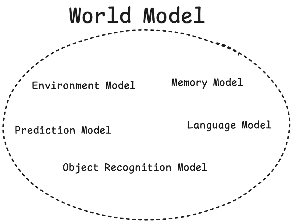 World Model은 하나의 실제 model을 뜻하는 게 아니라, 특정 역할을 수행하는 여러 model의 집합인 일종의 개념적 프레임워크라고 볼 수 있다. World Model은 Agent가 주변 환경을 이해하고, Agent의 Action이 환경에 어떤 영향을 주는지를 예측하고, language instructions과 peception, action을 이어주는 역할을 수행한다.
