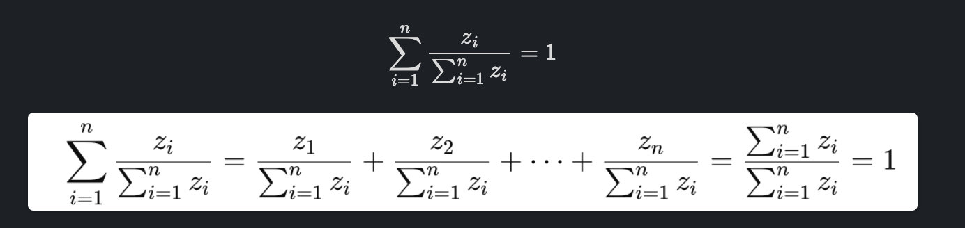 softmax function을 잘 살펴보면, 이전에 언급했던 내용을 볼 수 있습니다.