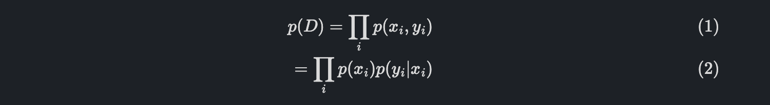 이렇게 놓고 보면, Dataset (x, y)는 x와 y의 joint distribution인 p(x, y)에서 샘플링된 것이라는 생각을 할 수 있습니다.