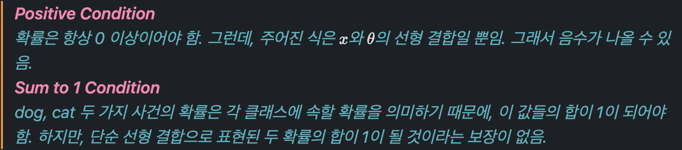 우리가 많이 쓰고 있었던 softmax function을 쓰는 이유를 이제 알 수 있을 것 같습니다. 사실 이론상 softmax function 뿐만 아니라, positive 하고 sum to 1 인 어떠한 함수든 사용할 수 있습니다.