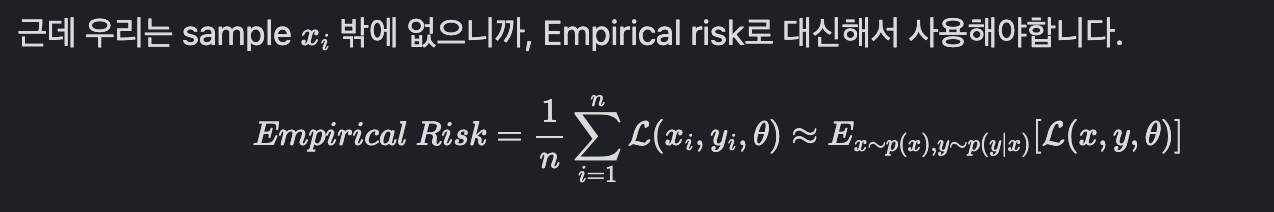 결과적으로 Supervised Learning이라고 하는 것은 Empirical Risk minimization이다.라고 정리할 수 있겠습니다.