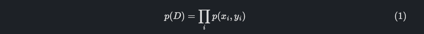여기서 그러면 P(D)는 무엇이냐?라고 하면 i.i.d를 가정하고 있기 때문에, 다음과 같습니다.