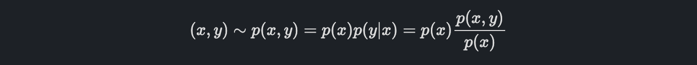 결과적으로, chain rule에 의해서 x, y sample을 x, y의 joint distribution으로 표현할 수 있습니다.
