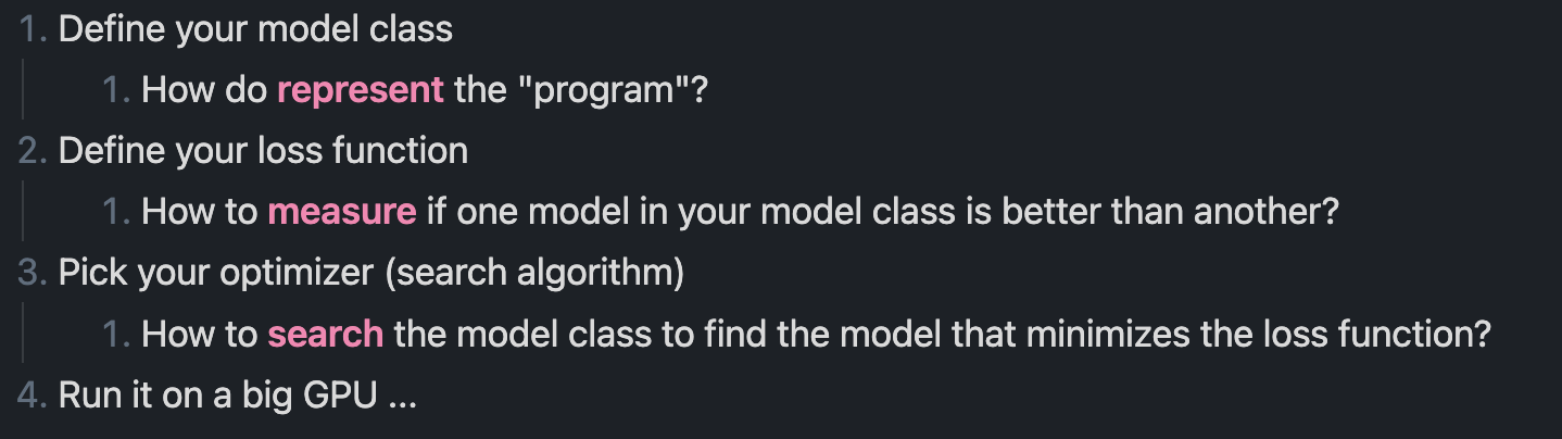 잠시 어떤 문제를 풀기 위한 formal 한 machine learning method에 대해서 살펴봅시다.