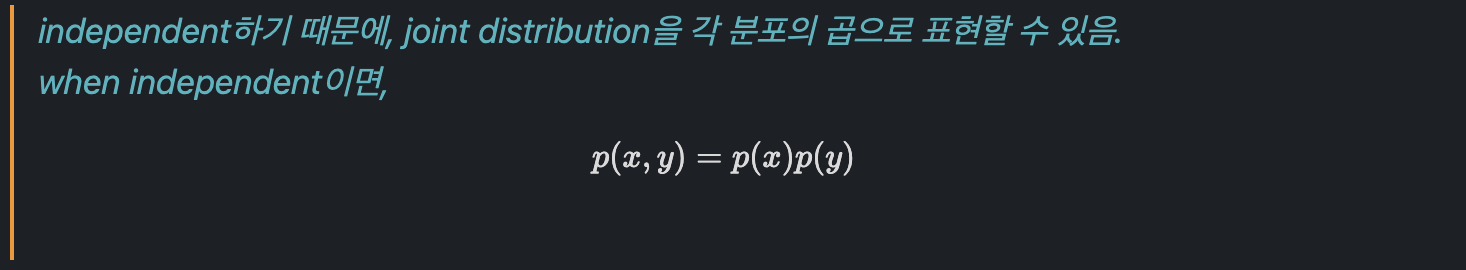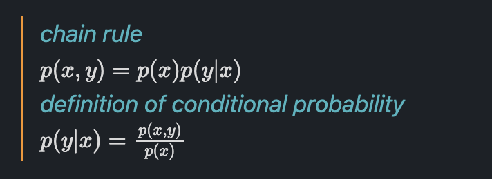 두 확률변수에 대해서 우리는 chain rule, conditional probability를 정의할 수 있습니다.