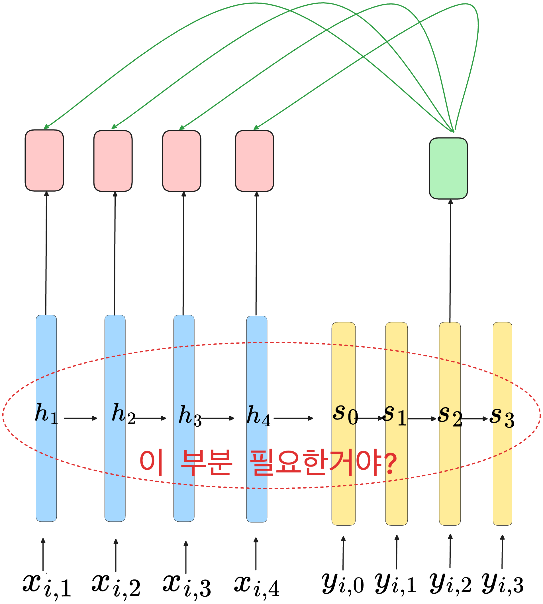 그럼 우리가 input sequence에서 하나씩 볼 수 없을까?라는 아이디어입니다. 일종의 길을 하나 더 만들어주자! 는 것인데요 그림으로 살펴보면 다음과 같습니다.