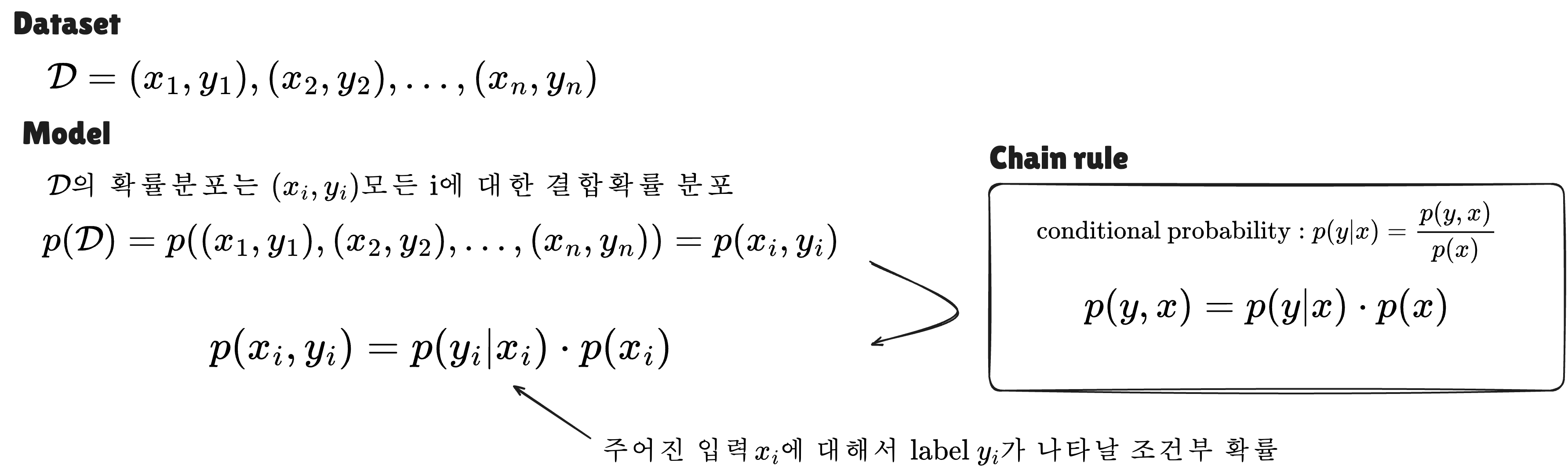 결과적으로 i.i.d. 가정 하에서 model을 표현하면 다음과 같습니다.