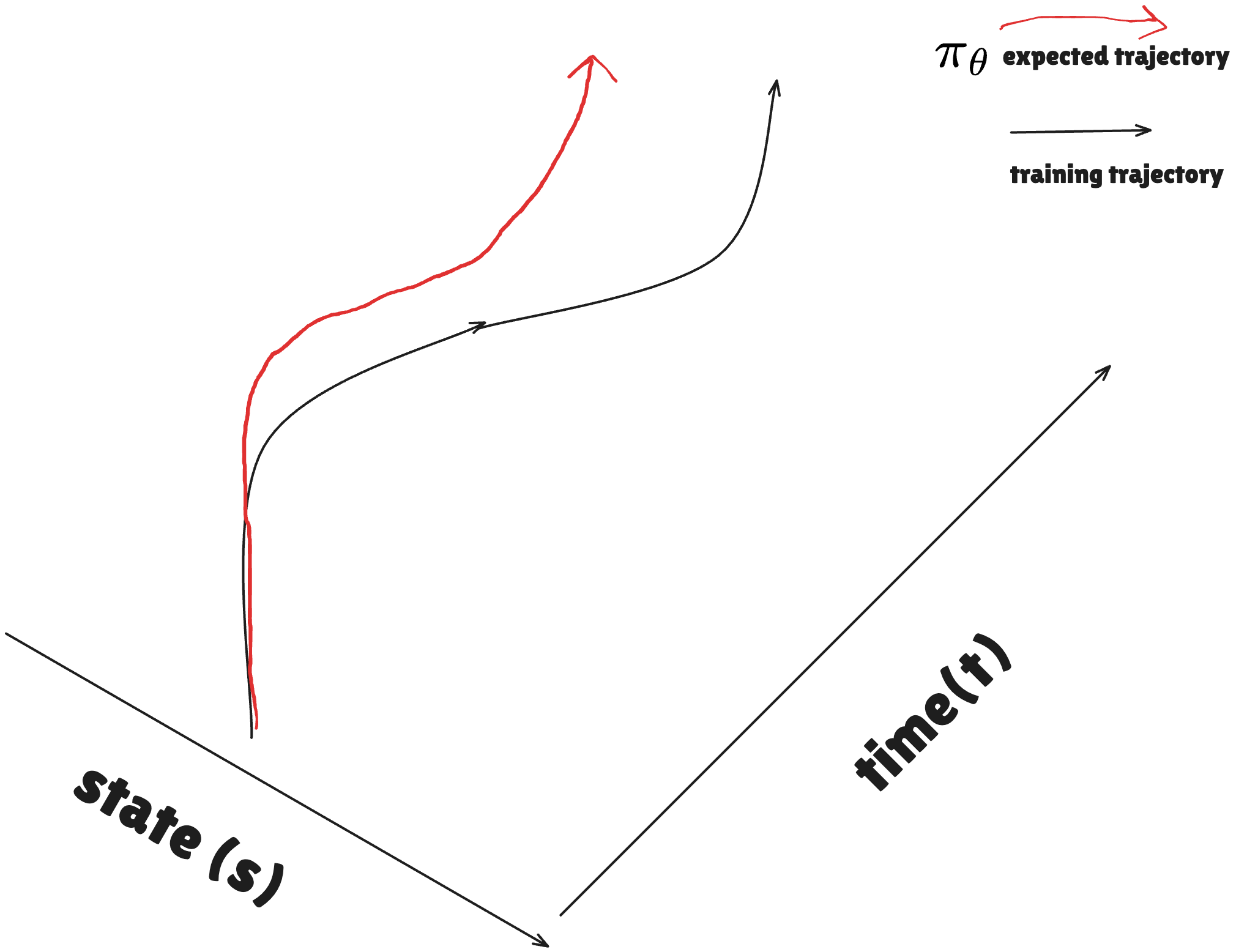 이유는 전문가의 policy를 아주 잘 학습했다고 하더라도, 아주 미세한 오차가 생기기 마련인데, 살짝 빗나간 예측은 다른 state로 이어지고 다른 state는 처음 보는 장면이기 때문에, 더 큰 오류로 이어지기 때문입니다.