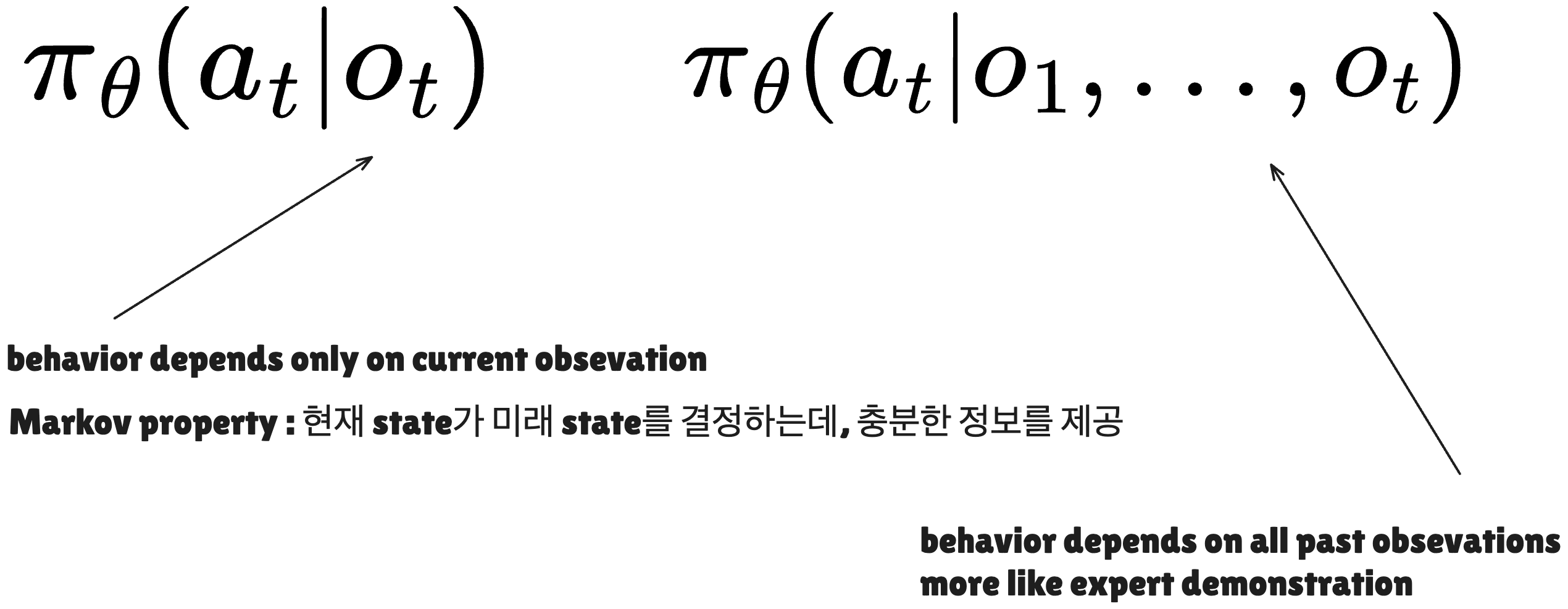 그렇다면, 우리는 왜 expert를 정확하게 따라하지 못하는가?에 대해서는 다음 2가지 이유가 존재합니다.