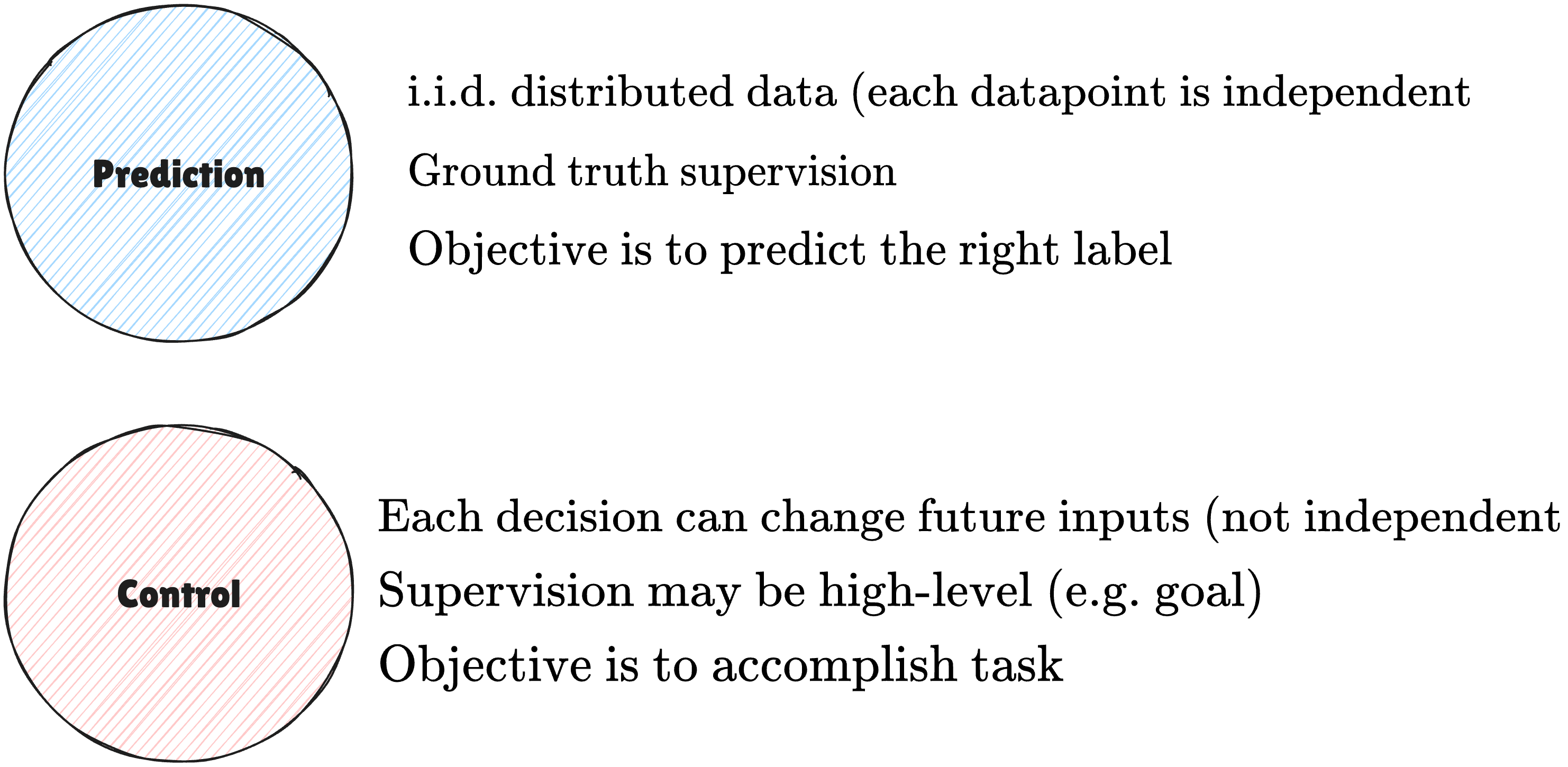 "Learning to control"을 생각할 때, 어떤 어려움들이 있을지 기존의 prediction과 비교하면서 생각을 해봅시다. 어떤 문제들이 있을까요?