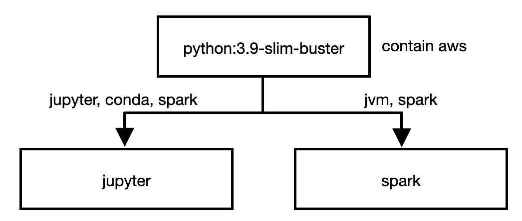 - 해당 베이스 이미지에 jvm 및 spark 를 구축하면 보다 깔끔하게 이미지를 관리할 수 있을 것 같다는 생각이 듭니다. 하지만 이 경우 os가 달라짐에 따라 의존성/호환성에 문제가 발생할 수 있고, 테스트가 필요합니다.