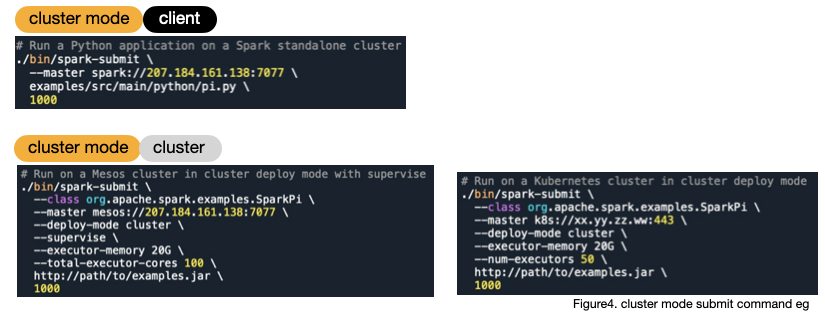 there's two kinds of deploy mode : client mode, cluster mode