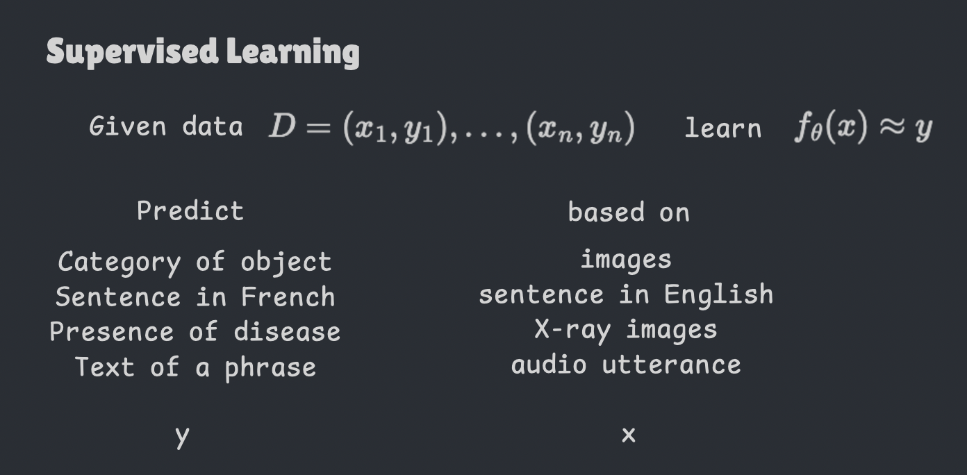 Supervised Learning (지도학습)이라고 하는 학습 메커니즘은 현대 AI에서 가장 많이 사용되는 방법이 아닐까 싶습니다. 우리가 어떤 image로부터 해당 이미지의 object 카테고리를 예측하는 모델을 만든다고 했을 때, 모델이 잘 예측할 수 있도록 "연습"을 시키는 행위라고 볼 수 있습니다.